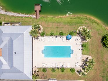 Community amenities include a heated pool overlooking a stocked fishing pond with a fountain and fishing deck, a clubhouse, laundry facilities, large bathhouses, an enclosed playground, a dog park, and a pavilion with ceiling fans. Each lot has full water, sewer, and electric hookups, and owners are free to manage their own short-term rentals.
